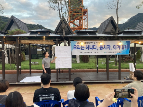 1. 개 요 : 외부여건이 어려운시기에 병원 활성화를 위한 개선방안을 마련하기 위한 부서장 워크샵을 개최함 2. 일 시 : 2025년 10월 14일 화요일 오후 16:30 ~ 18:30 3. 장 소 : 순창 썬웨이 글램핑장 |